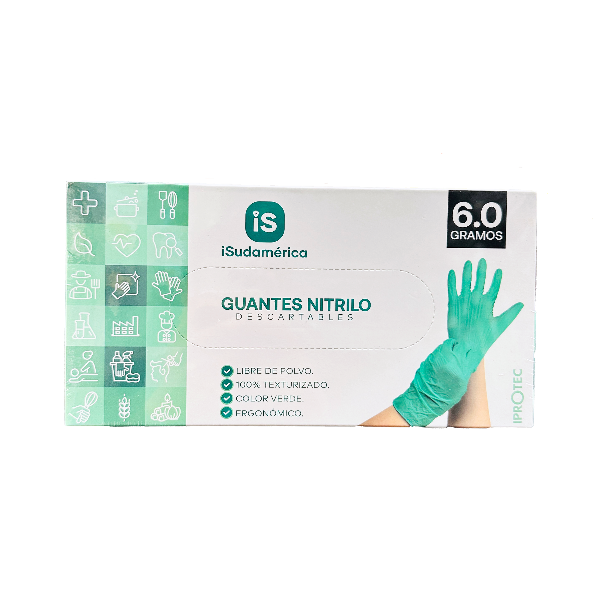 GUANTE NITRILO VERDE TALLA L 6.0 GR C/100 SUDAMERICA
