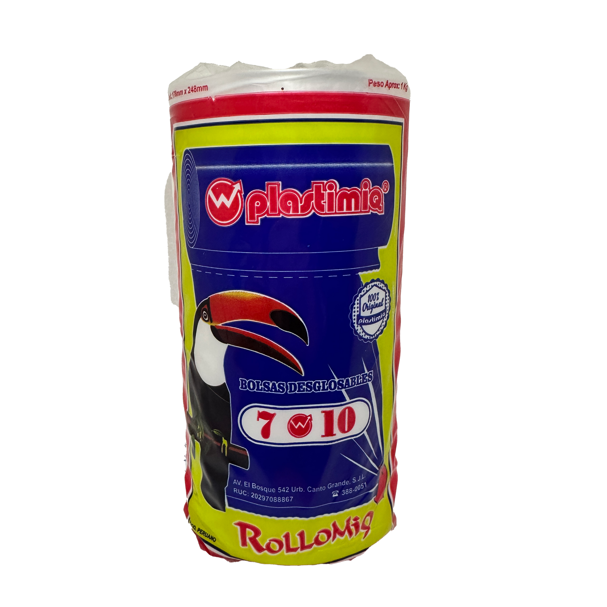 Bolsa en Rollo 7x10 (Apto para pesos de 1 KG) en color Transparente Rollomiq de Plastimiq y disponible en las siguientes cantidades.
